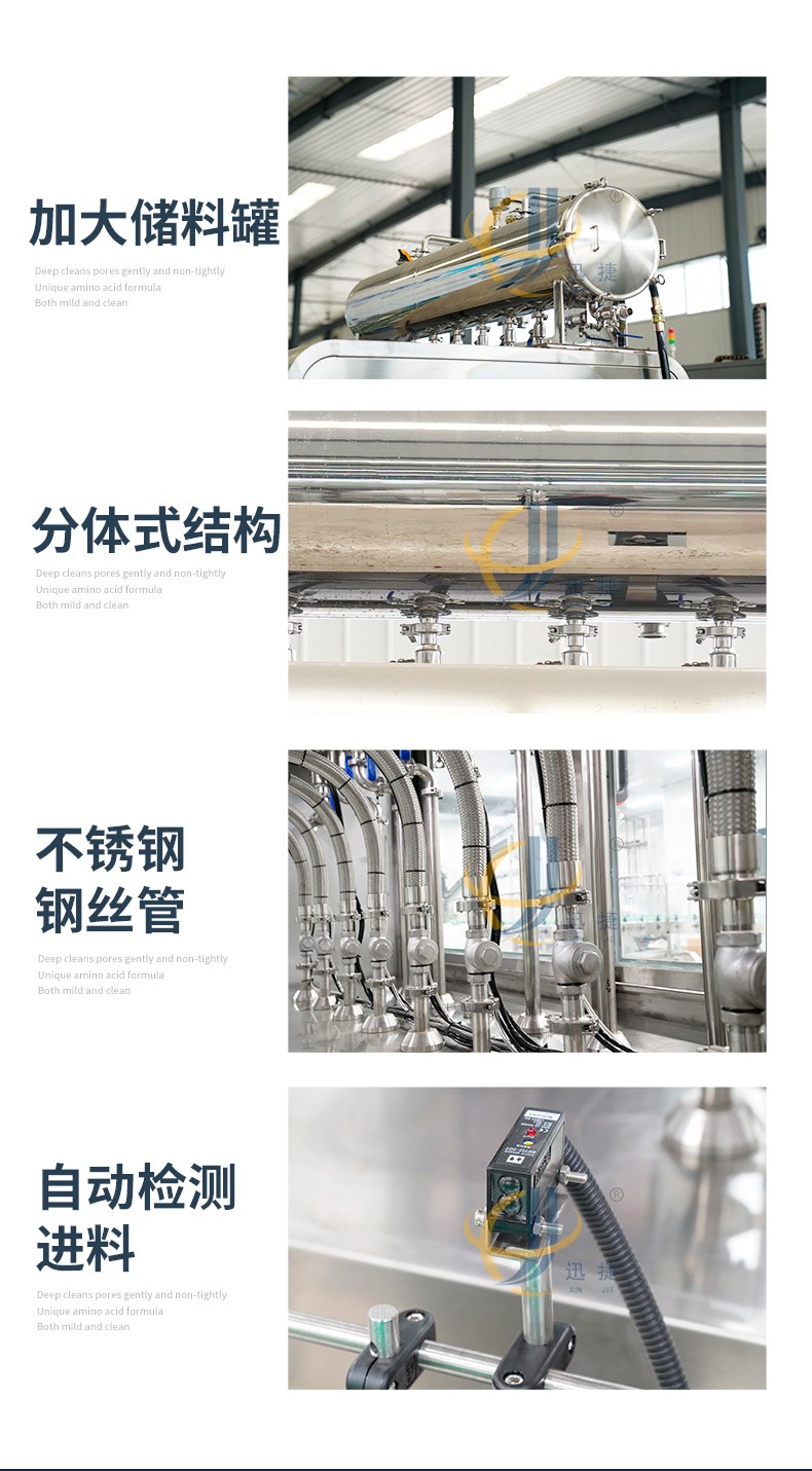 全自動(dòng)液體灌裝機(jī)迅捷_01.jpg全自動(dòng)液體灌裝機(jī)用于灌裝飲料、果汁,牛奶,酒精,消毒液,口服液,洗衣液等液體,廣泛應(yīng)用于食品,化工,醫(yī)療等行業(yè),灌裝精密,功能強(qiáng),實(shí)用性高的灌裝機(jī)械。