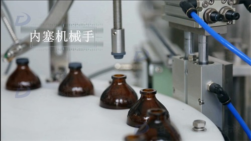 內(nèi)塞機(jī)械手將內(nèi)塞吸起來(lái),然后精準(zhǔn)壓進(jìn)瓶口