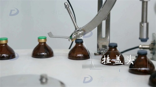 瓶子在經(jīng)過(guò)掛蓋頭時(shí)被掛上蓋子