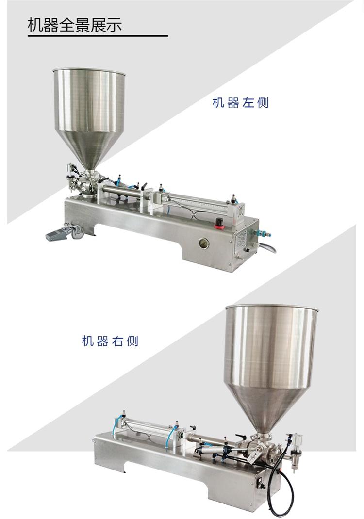 氣動(dòng)膏體灌裝機(jī)主要適用于化工、食品、日化、藥品、農(nóng)藥、潤(rùn)滑油等行業(yè)的液體膏體等物質(zhì)的定量灌裝,該灌裝機(jī)缸體、機(jī)殼、料斗均由不銹鋼材質(zhì)制成,活塞有四氟乙烯材料制成,氣動(dòng)部分均采用氣動(dòng)元件,符合GMP[要求,氣動(dòng)膏體灌裝機(jī)的灌裝量和灌裝速度可任意調(diào)節(jié),擁有腳踏開(kāi)關(guān)和自動(dòng)灌裝功能,精度高,結(jié)構(gòu)簡(jiǎn)潔,操作便利。